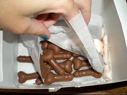 Agora um fabricante local lançou um novo chocolate especificamente para o público masculino. É feito de chocolate ao leite com avelã, tem o formato de seios e vem em 3 tamanhos. Dizem que está vendendo bem. O fabricante esclareceu que não existem muitos produtos voltados só para os homens, mas que é preciso dar atenção a eles.